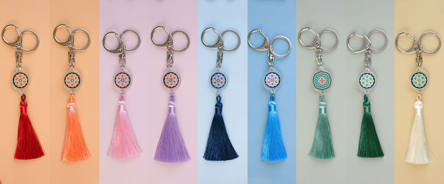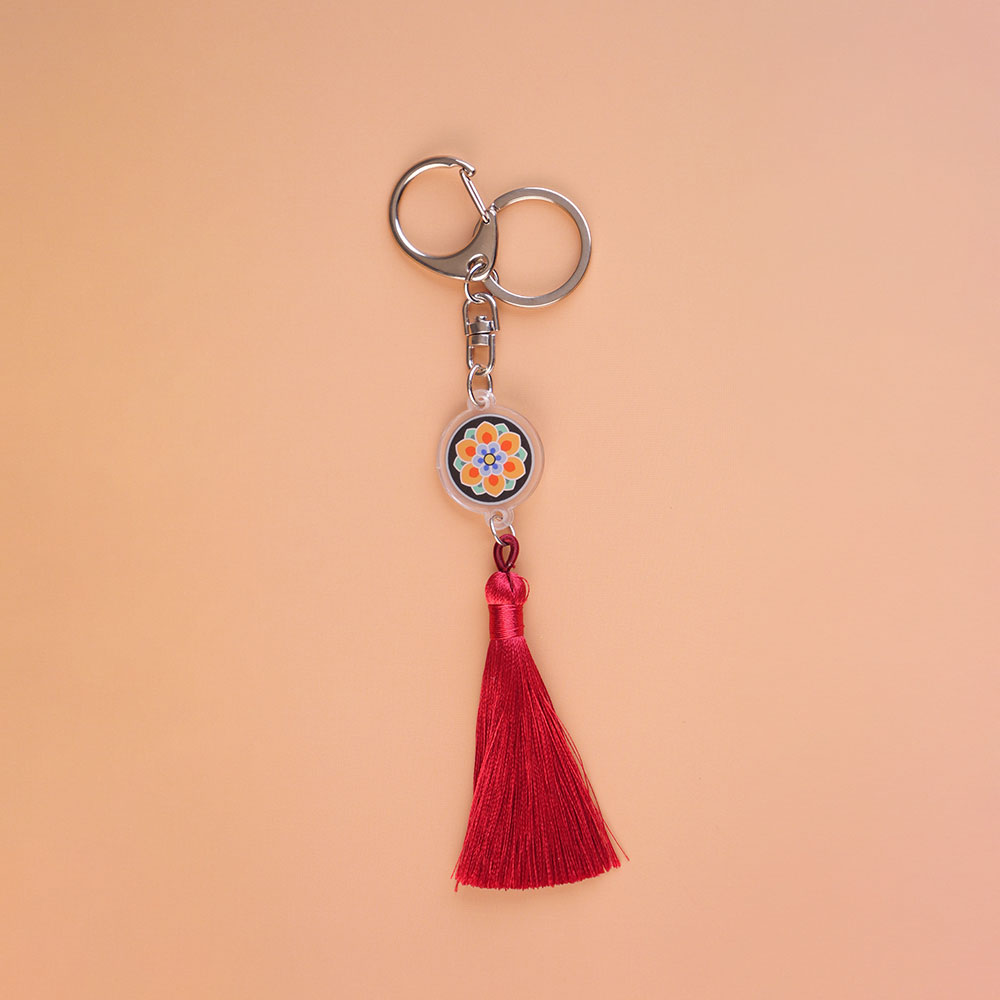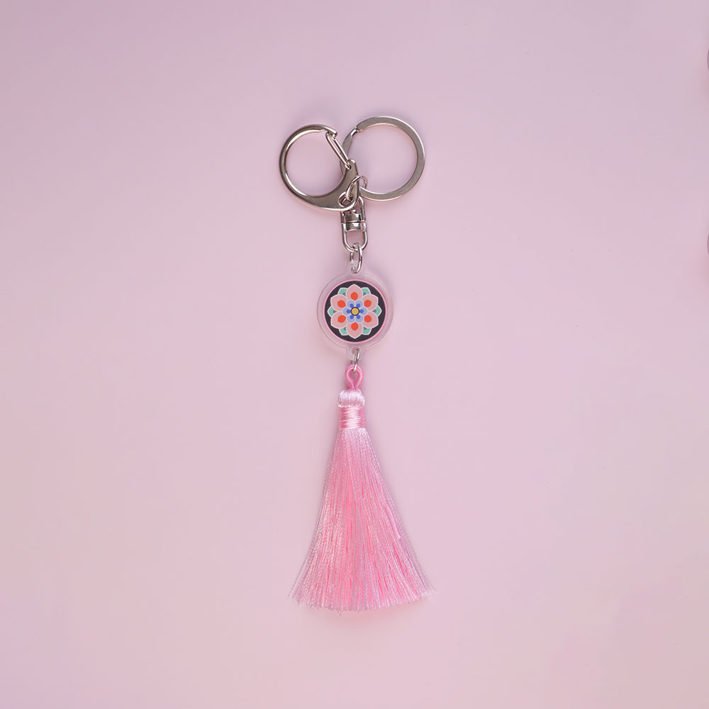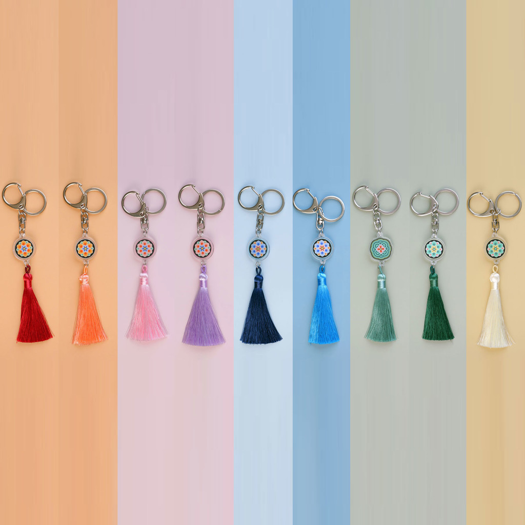 화려한 색감과 고운 술 장식이 조화를 이루어, 데일리로 가방·열쇠·파우치 어디에나 포인트가 됩니다.